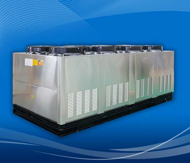 第二步,冷媒吸收的熱能,首先經熱交換器加熱池水,實現池水加熱功能;余熱經熱管熱交換器上部及空氣冷凝器,加熱冷卻的空氣,實現空氣保溫功能。