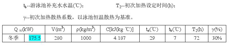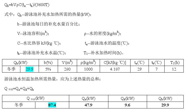 游泳池補充水加熱所需的熱量,應按下式計算: