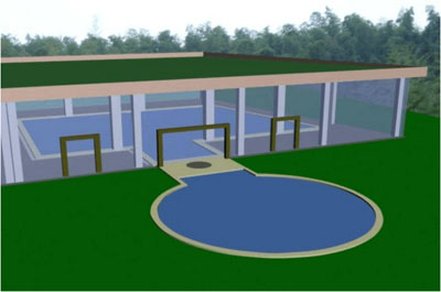 方案三:將成人池與兒童池徹底隔開,采用無機(jī)房過濾設(shè)備,成人池與兒童池分別安裝過濾設(shè)備,互不干擾,根本上解決冬季加熱問題。如圖:
