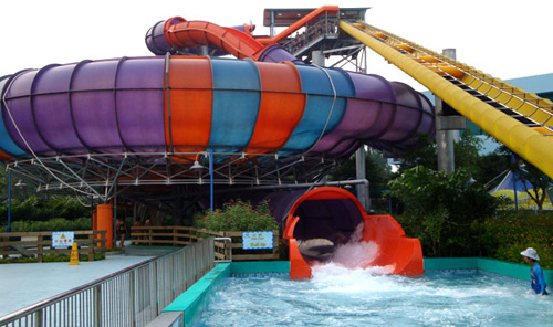 巨獸碗滑梯又稱旋渦滑梯,游客乘坐皮筏,從高13.5米多的平臺(tái)口滑下,通過(guò)了一段長(zhǎng)達(dá)幾十米的全封閉的管狀滑道之后,會(huì)高速?zèng)_入一個(gè)直徑為15米的巨碗,在離心力的帶動(dòng)下,游客好象在太空中旋轉(zhuǎn)一樣,讓人目眩神迷,最后被吸入碗中間的洞口,游客會(huì)享受難忘的滑行體驗(yàn),尖叫聲將伴隨滑行的始終。